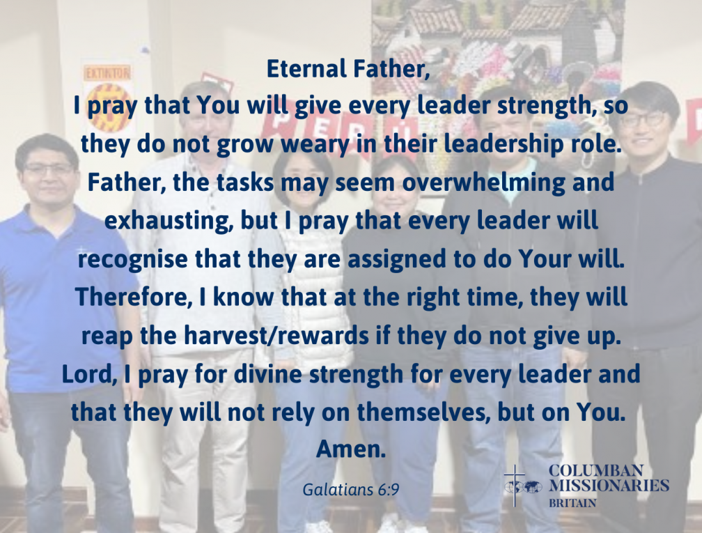 " May the Lord guide and strengthen the Society's new leadership team as they embark on this new chapter. Source URL https://columbans.co.uk/pray/14323/a-prayer-for-our-societys-new-leaders/
